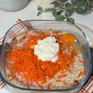 The recipe starts with ripe bananas, which add natural sweetness and creaminess to the mixture. You’ll mix in grated carrots, oats, protein powder, and warm spices like cinnamon and cloves for that classic carrot cake flavor. A touch of Greek yogurt and milk gives it a lovely, moist texture, while an egg helps bind everything together.