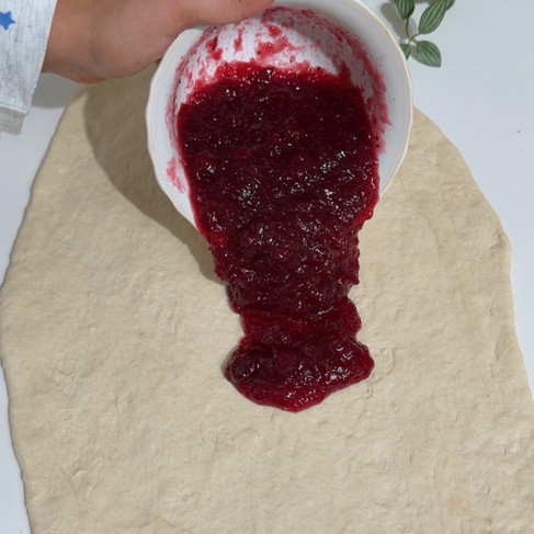 If you've never made yogurt dough, it’s a game-changer. With just flour, Greek yogurt, salt, and baking powder, you get a dough that’s tender, naturally enriched, and incredibly forgiving. No yeast, no kneading for 10 minutes, no complicated steps. Just mix, let it puff up a little, roll it out, and you’re ready to build your pastry. The dough rolls out into a large oval, and from there you layer on a generous spread of cranberry sauce. The sweetness of the cranberry pairs perfectly with creamy brie, they melt together in the oven and create pockets of gooey, tangy richness in every bite. Rolling the dough into a log and slicing it into spirals gives you gorgeous swirls that look impressive without requiring any complicated technique.